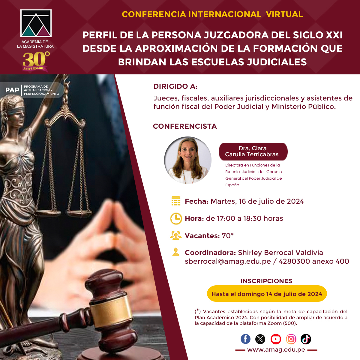 En el marco del XXX Aniversario Institucional de la Academia de la Magistratura de Perú, tiene lugar la conferencia