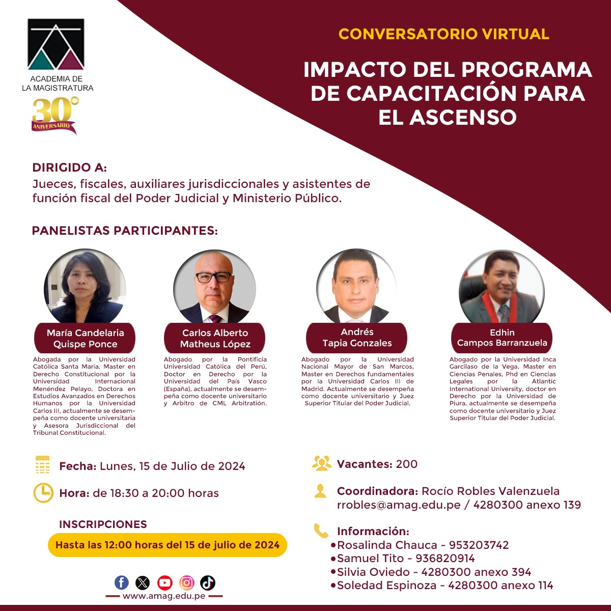 En el marco del XXX Aniversario Institucional de la Academia de la Magistratura de Perú, tiene lugar el conversatorio virtual
